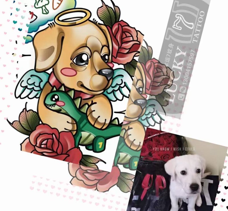 小狗设计|幸运7纹身纹身图片_手臂New School纹身图案