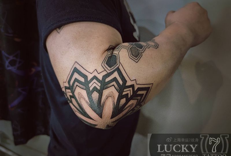 几何点刺包臂|幸运7纹身纹身图片_手臂点刺几何未完成纹身图案