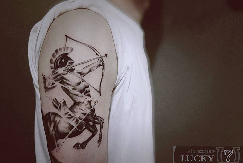 人马射手座|幸运7纹身纹身图片_手臂欧美写实纹身图案