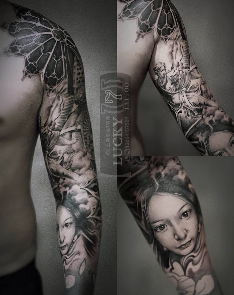 当前位置: 首页 >上海市纹身店-幸运7纹身Lucky7tattoo纹身图案>欧美黑灰包臂|幸运7纹身纹身图片_手臂欧美写实纹身图案