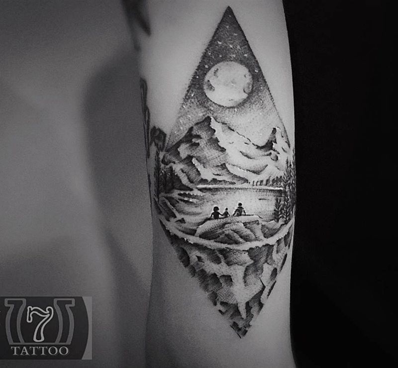 清新山水|幸运7纹身纹身图片_手臂点刺清新纹身图案