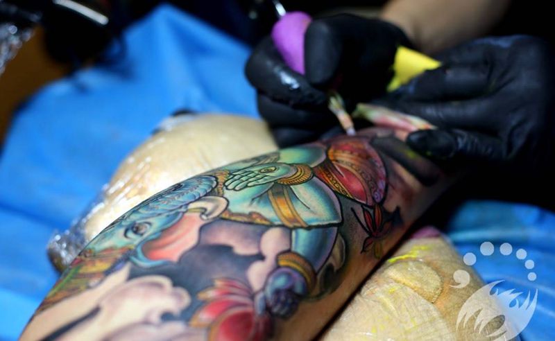 当前位置: 首页 >黑龙江省牡丹江市纹身店-雕金堂刺青纹身图案>重彩象神by阿开.纹身图片