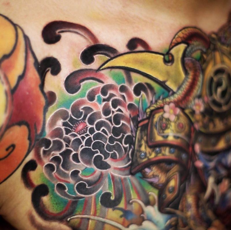当前位置: 首页 >黑龙江省牡丹江市纹身店-雕金堂刺青纹身图案>花胸重彩作品by阿开纹身图片