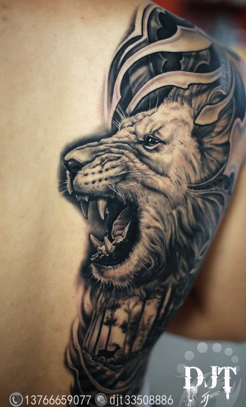 当前位置: 首页 >黑龙江省牡丹江市纹身店-雕金堂刺青纹身图案>黑灰狮子作品by阿开纹身图片