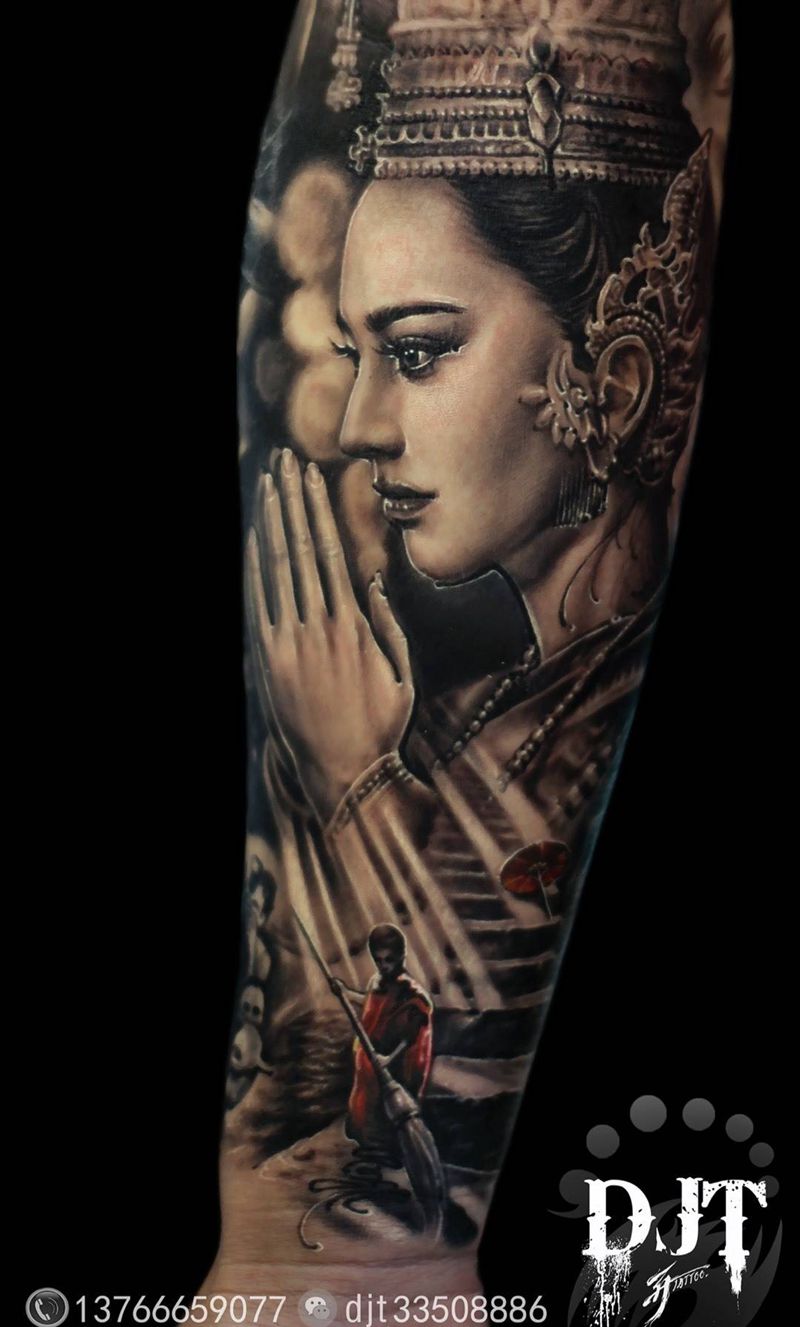 by 首席 阿开.纹身图片_欧美写实肖像人物原创静物宗教手臂成品国画纹身图案