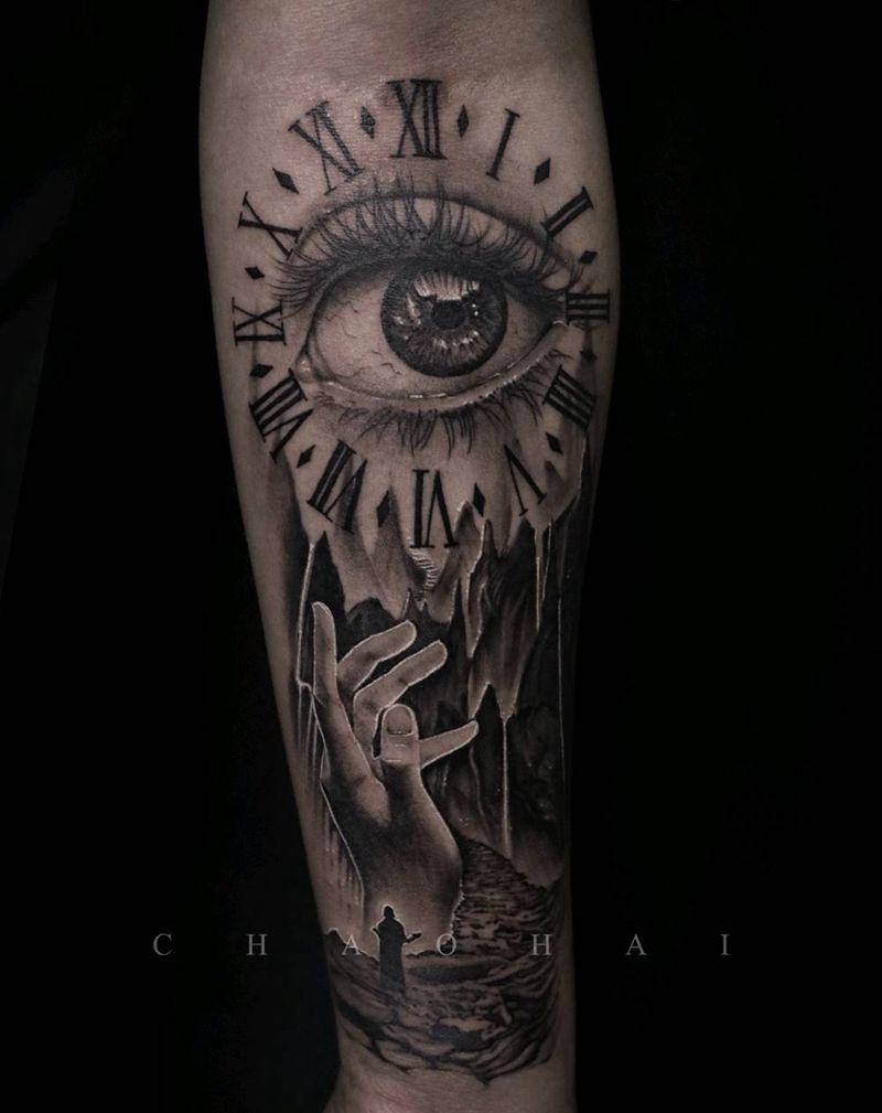 眼睛 深渊纹身图片_手臂欧美写实深渊纹身图案