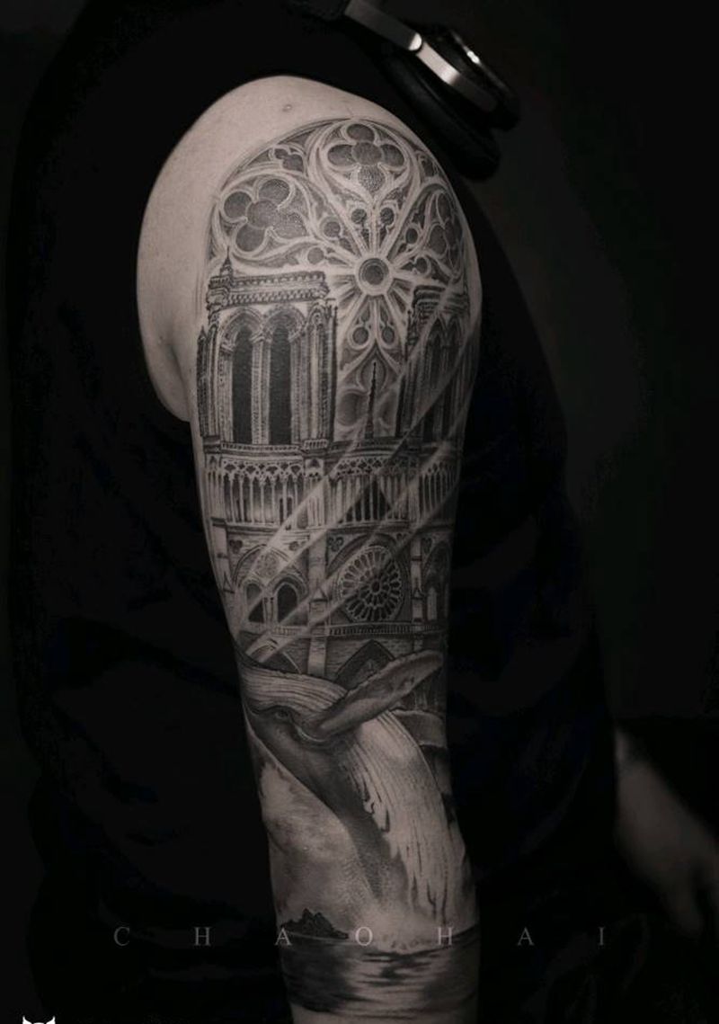 当前位置: 首页 >上海市纹身店-朝海刺青纹身图案>巴黎圣母院纹身图片_手臂欧美写实纹身图案