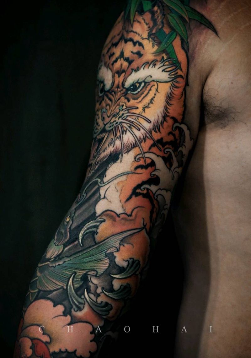 当前位置: 首页 >上海市纹身店-朝海刺青纹身图案>猛虎传统花臂纹身图片_手臂新传统纹身图案
