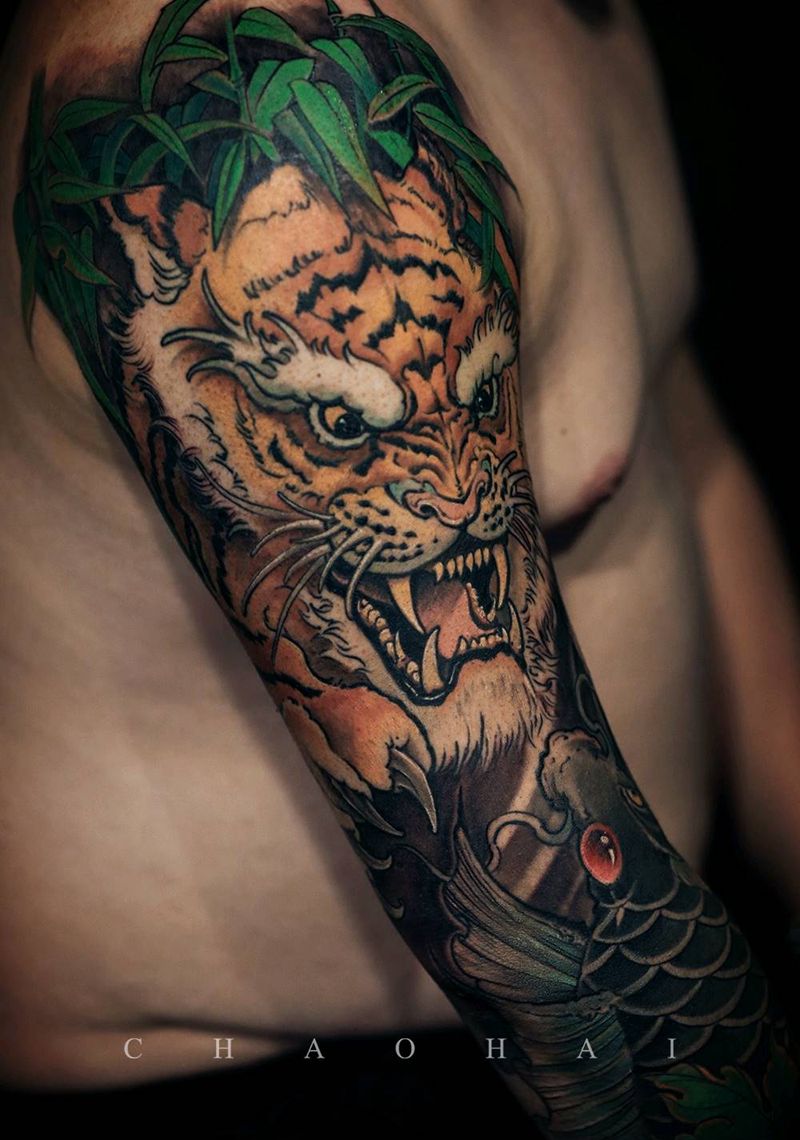 当前位置: 首页 >上海市纹身店-朝海刺青纹身图案>猛虎传统花臂纹身图片_手臂新传统纹身图案