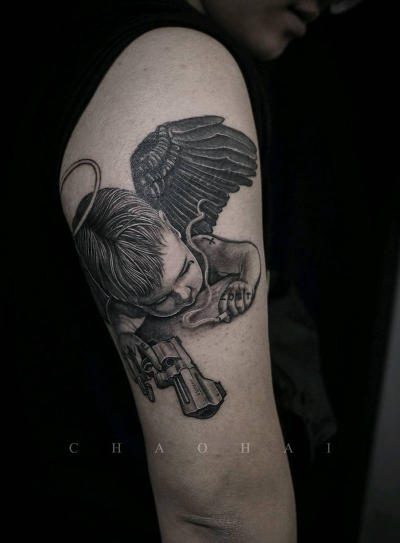 当前位置: 首页 >上海市纹身店-朝海刺青纹身图案>天使纹身图片_手臂欧美写实纹身图案