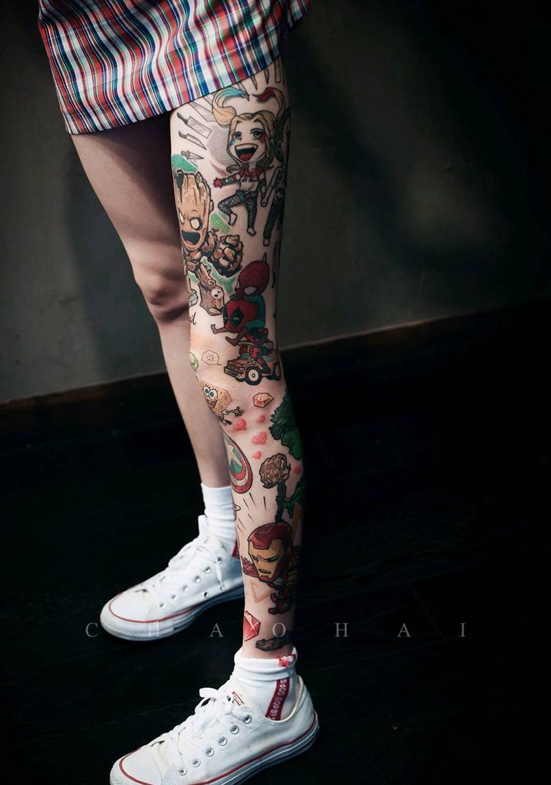 当前位置: 首页 >上海市纹身店-朝海刺青纹身图案>复仇者联盟纹身图片_腿部New School花腿卡通纹身图案