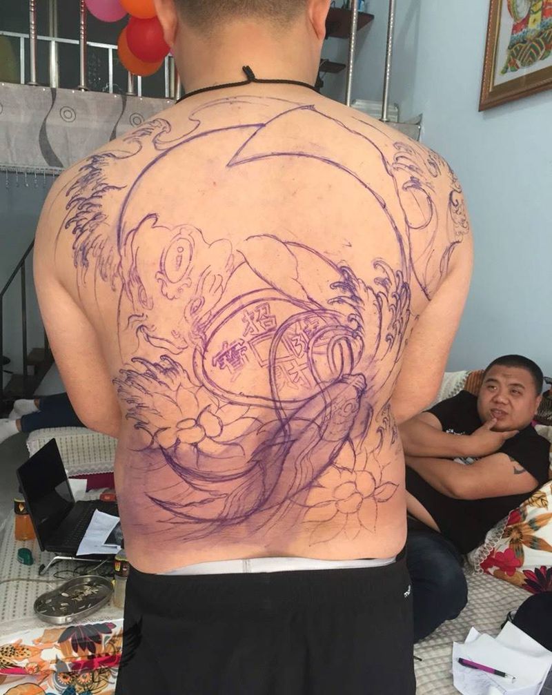当前位置: 首页 >黑龙江省绥化市纹身店-极限刺青纹身图案>鲤鱼纹身图片_成品背部传统动物纹身图案