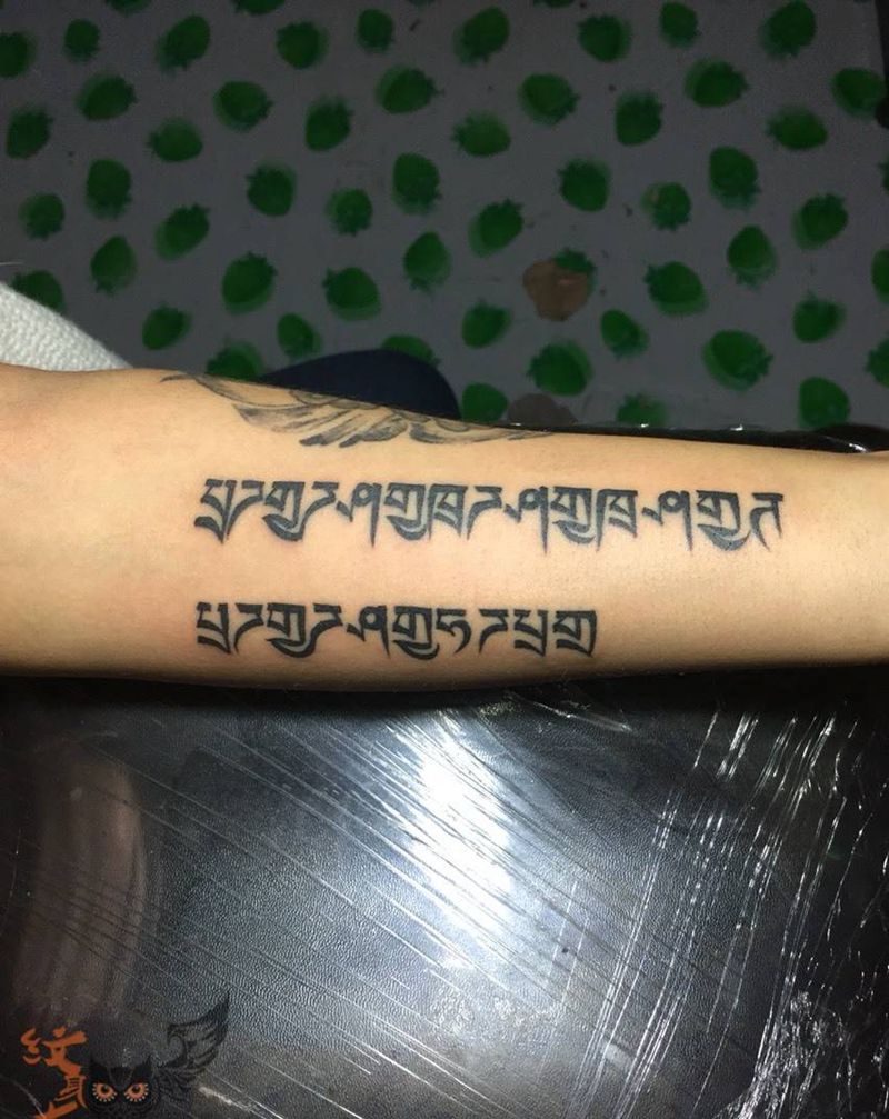 当前位置: 首页 >黑龙江省绥化市纹身店-极限刺青纹身图案>梵文纹身图片_成品手臂传统字符纹身图案