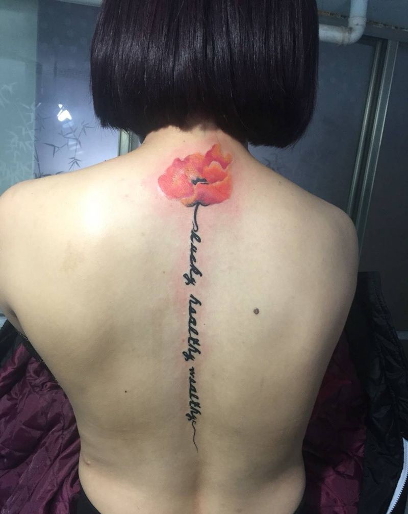 后背泼墨纹身纹身图片_成品背部传统字符纹身图案