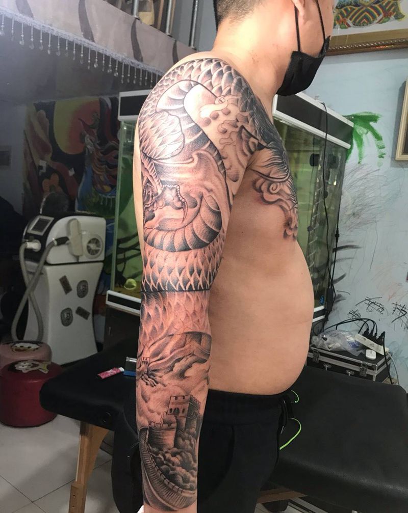 遮盖龙头纹身。纹身图片