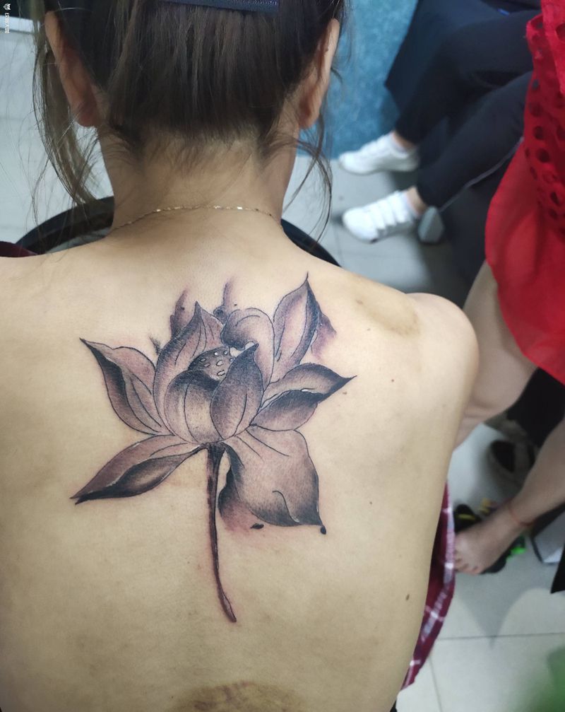 当前位置: 首页 >黑龙江省佳木斯市纹身店-大棋刺青纹身图案>荷花纹身图片_背部水墨纹身图案