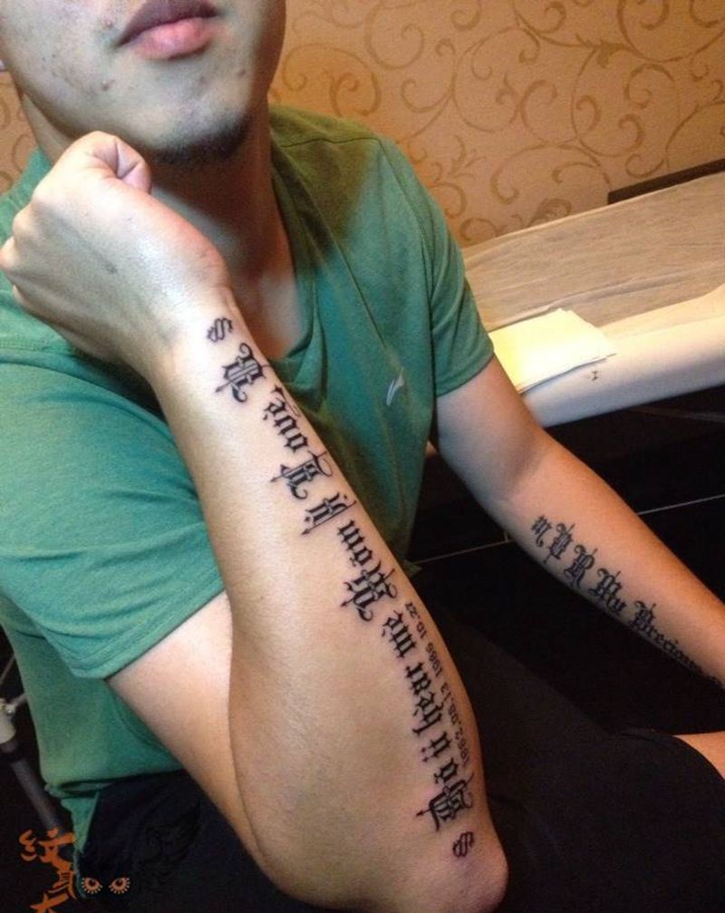 • T家庭图,一家四口生日纪念!纹身图片_手臂纹身图案