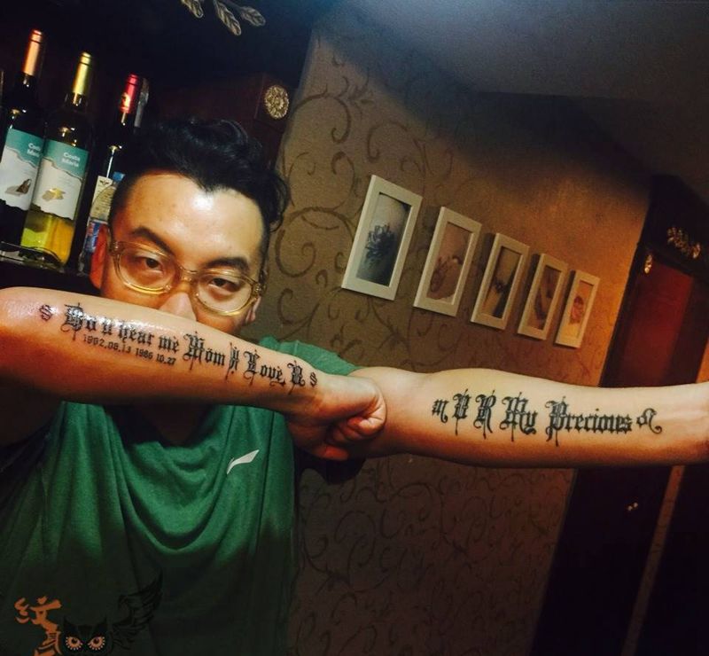 • T家庭图,一家四口生日纪念!纹身图片_手臂纹身图案