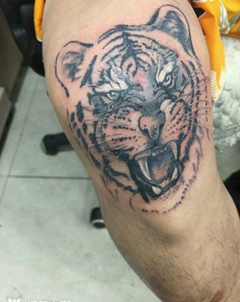 • T网红王老大花腿龙纹身图片_腿部新传统纹身图案