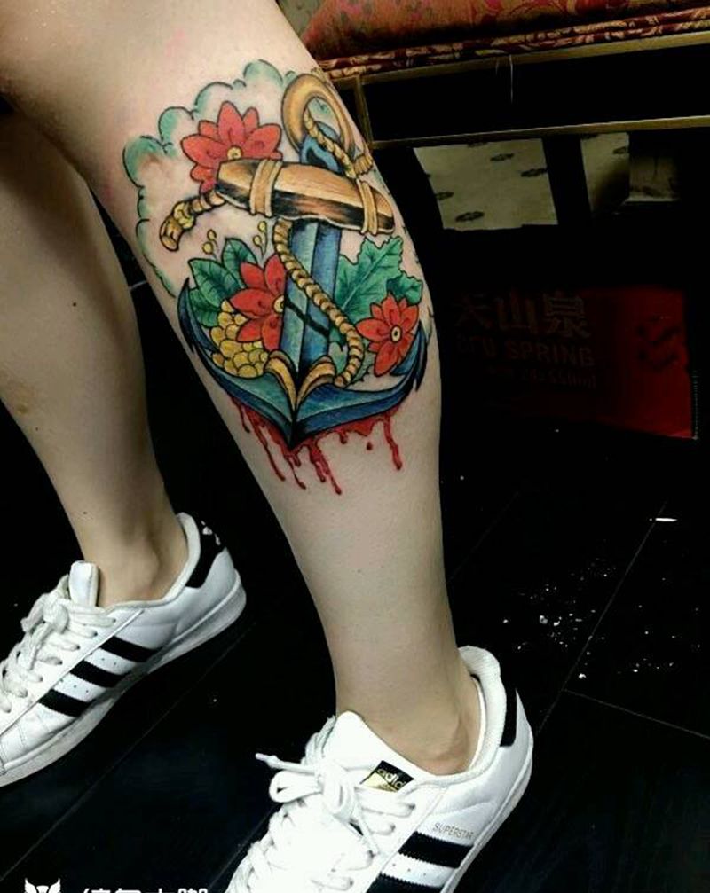• T网红王老大花腿龙纹身图片_腿部新传统纹身图案