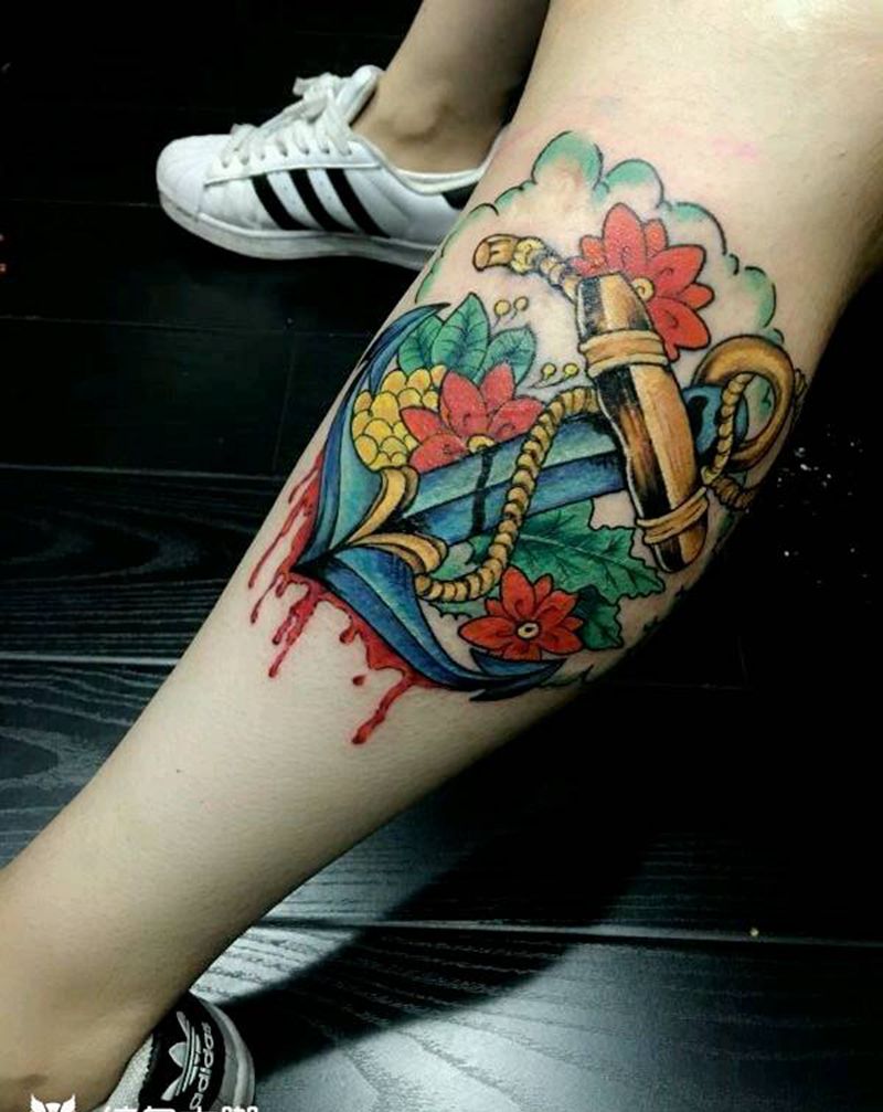 • T网红王老大花腿龙纹身图片_腿部新传统纹身图案