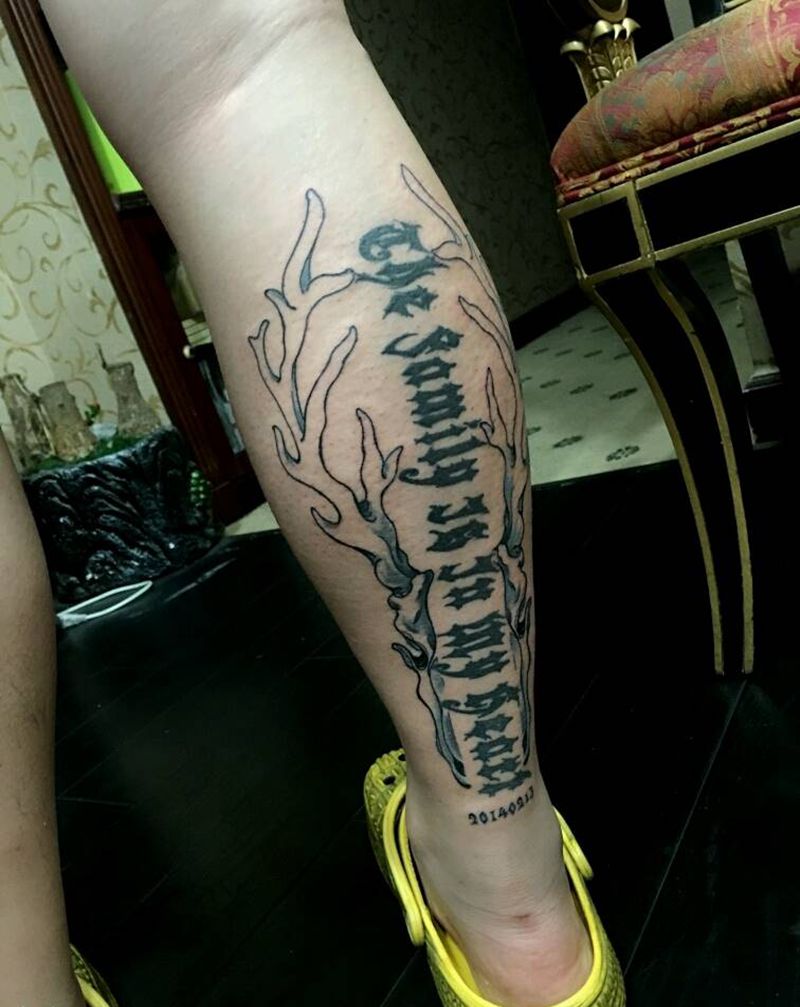• T网红王老大花腿龙纹身图片_腿部新传统纹身图案