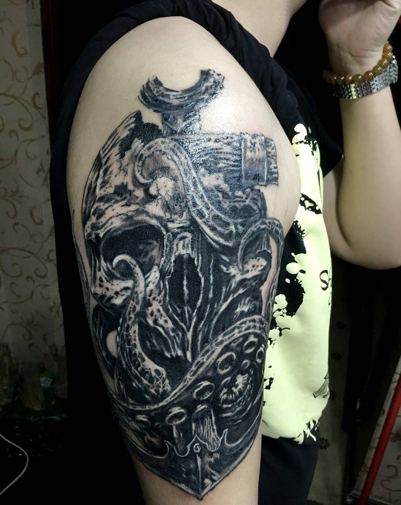 • 纹身吧推荐的披肩图腾半胛纹身图案作品展示