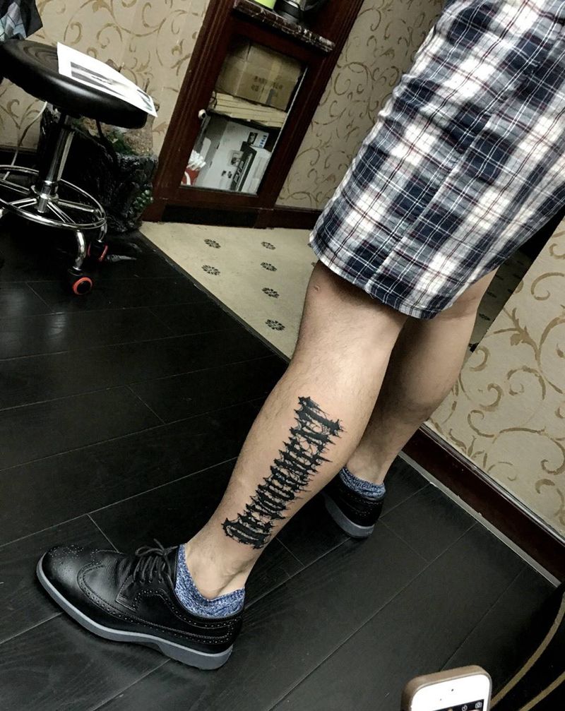• T包小腿吹火男+阿多福纹身图片_腿部老传统新传统吹火男阿