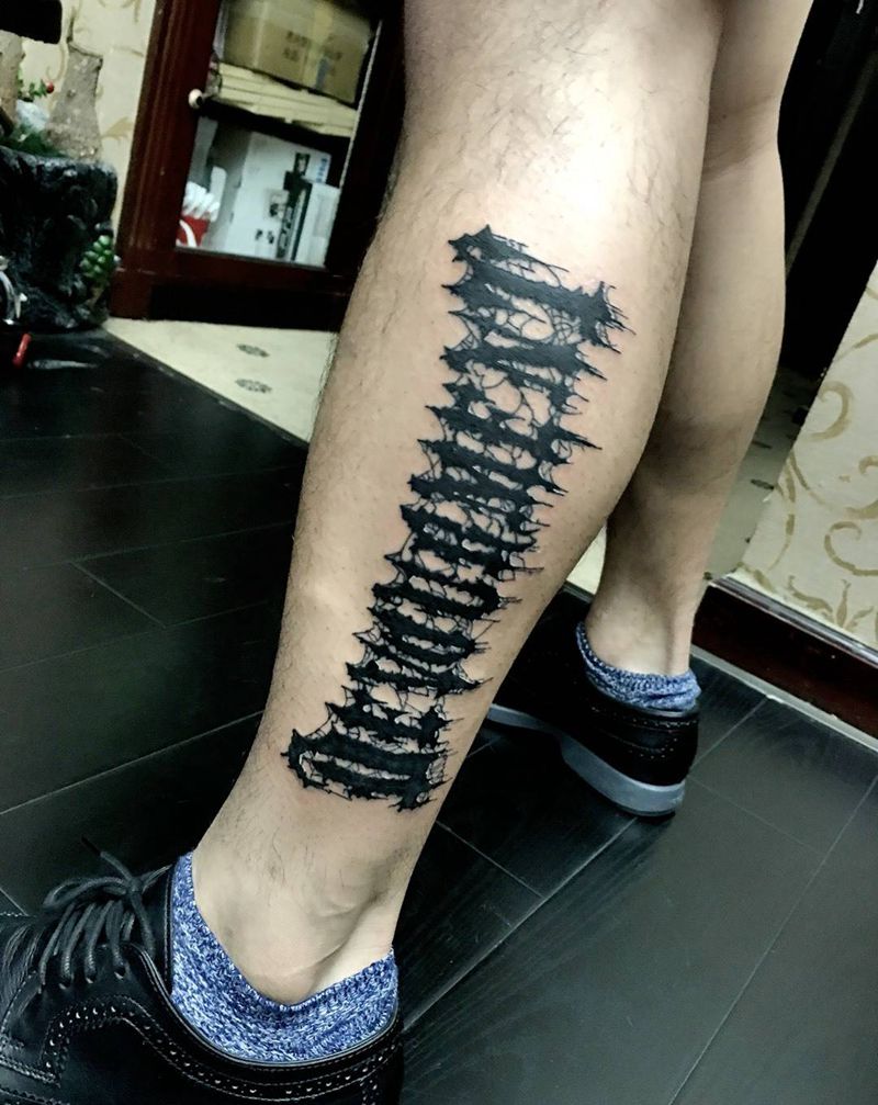 • T网红王老大花腿龙纹身图片_腿部新传统纹身图案