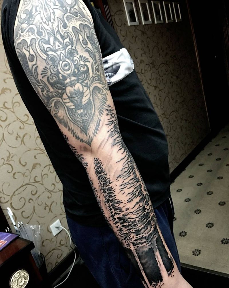 当前位置: 首页 >上海市纹身店-上海记号刺青纹身图案>纳西族大帅哥的森林之王!纹身图片