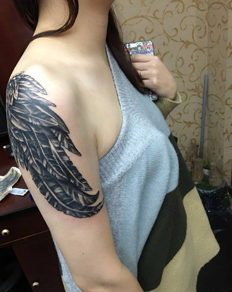 • 纹身吧推荐的披肩图腾半胛纹身图案作品展示