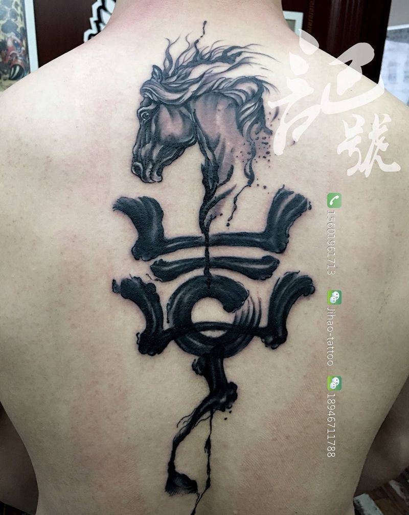 黑灰满背纹身图案