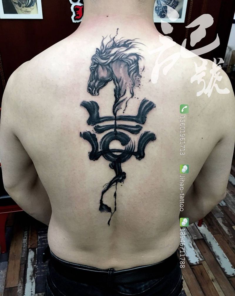 黑灰满背纹身图案