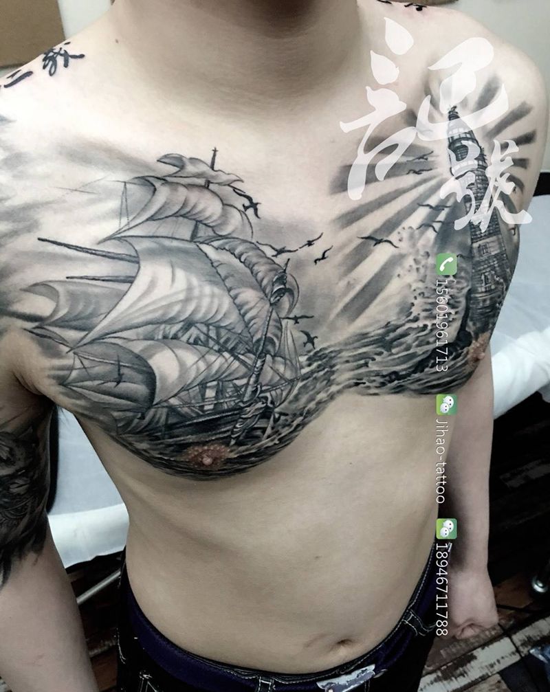 • 男性大花胸_42张优秀的男性大花胸纹身图案图片