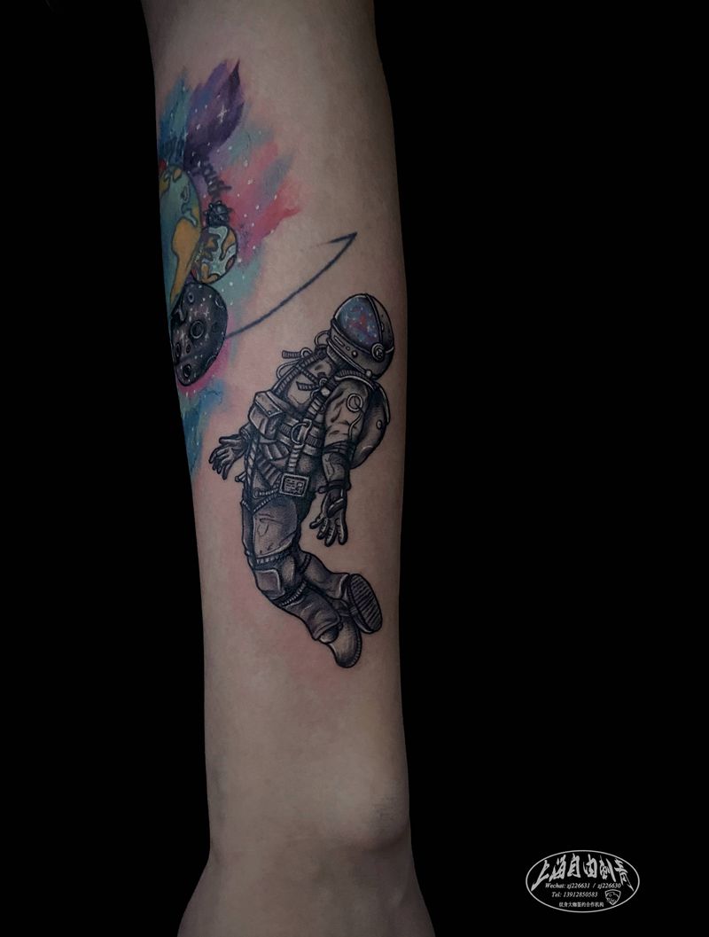 当前位置: 首页 >上海市纹身店-自由刺青纹身图案>宇航员纹身图片_手臂纹身图案