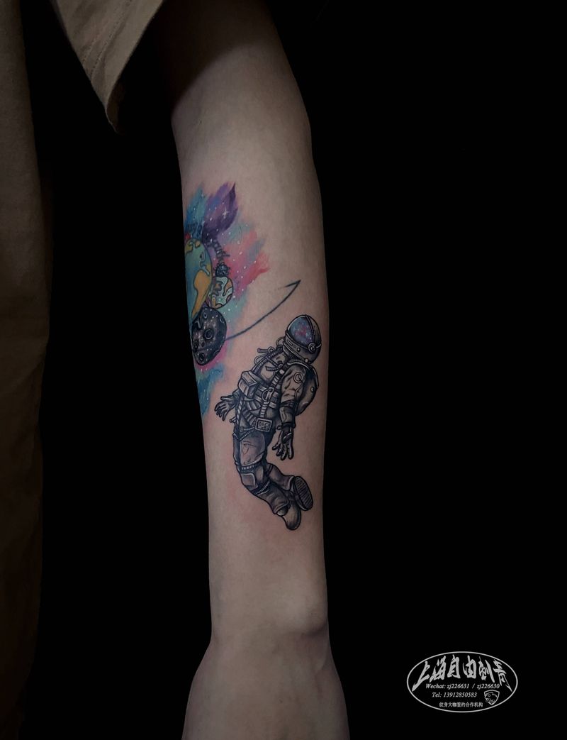 当前位置: 首页 >上海市纹身店-自由刺青纹身图案>宇航员纹身图片_手臂纹身图案