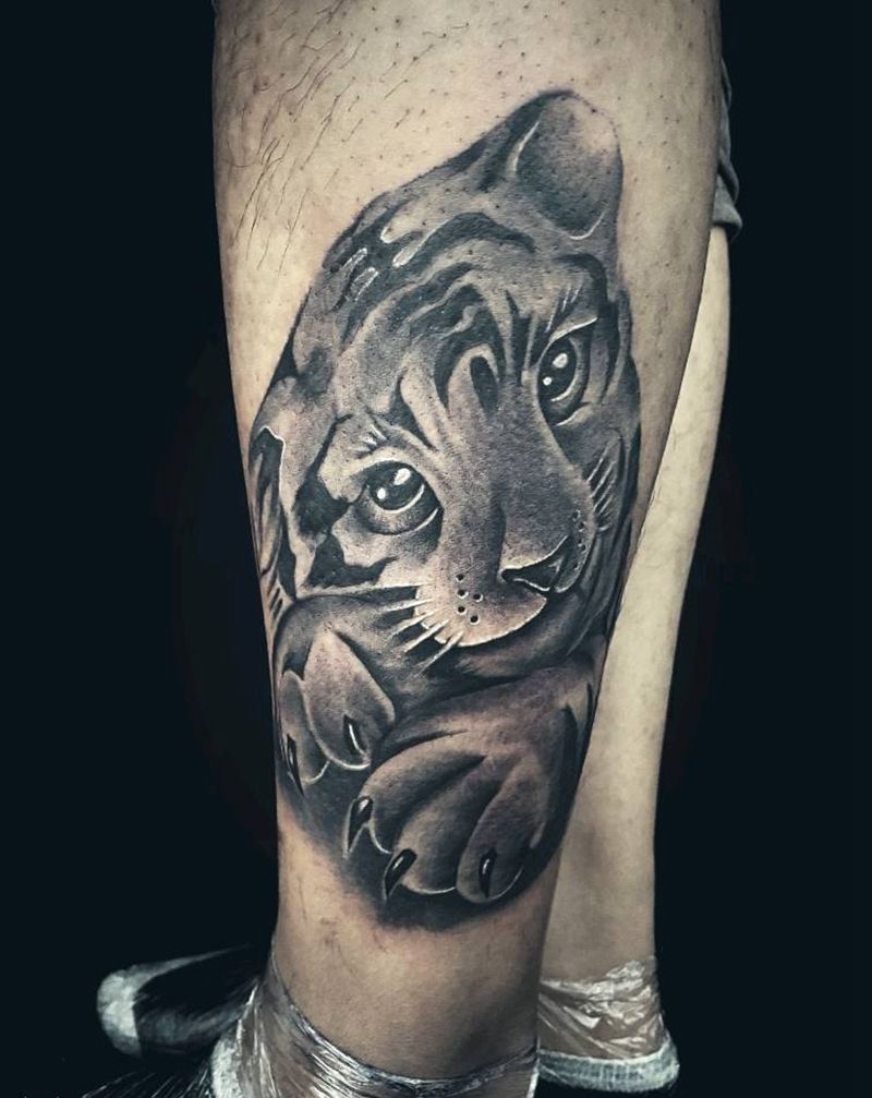 • T网红王老大花腿龙纹身图片_腿部新传统纹身图案