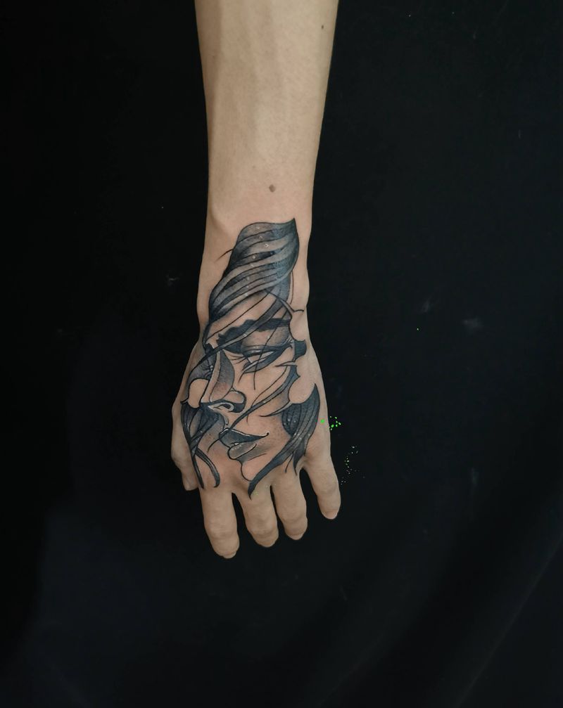当前位置: 首页 >上海市纹身店-自由刺青纹身图案>丧纹身图片_手部New School纹身图案