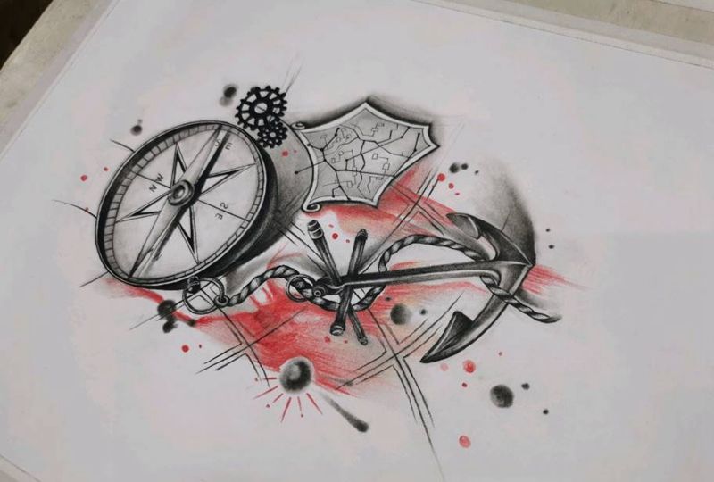 当前位置: 首页 >上海市纹身店-自由刺青纹身图案>启航纹身图片_腿部欧美写实指南针船锚纹身图案