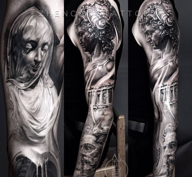 当前位置: 首页 >上海市纹身店-针藏刺青纹身图案>针藏刺青纹身作品纹身图片_成品手臂欧美人物纹身图案