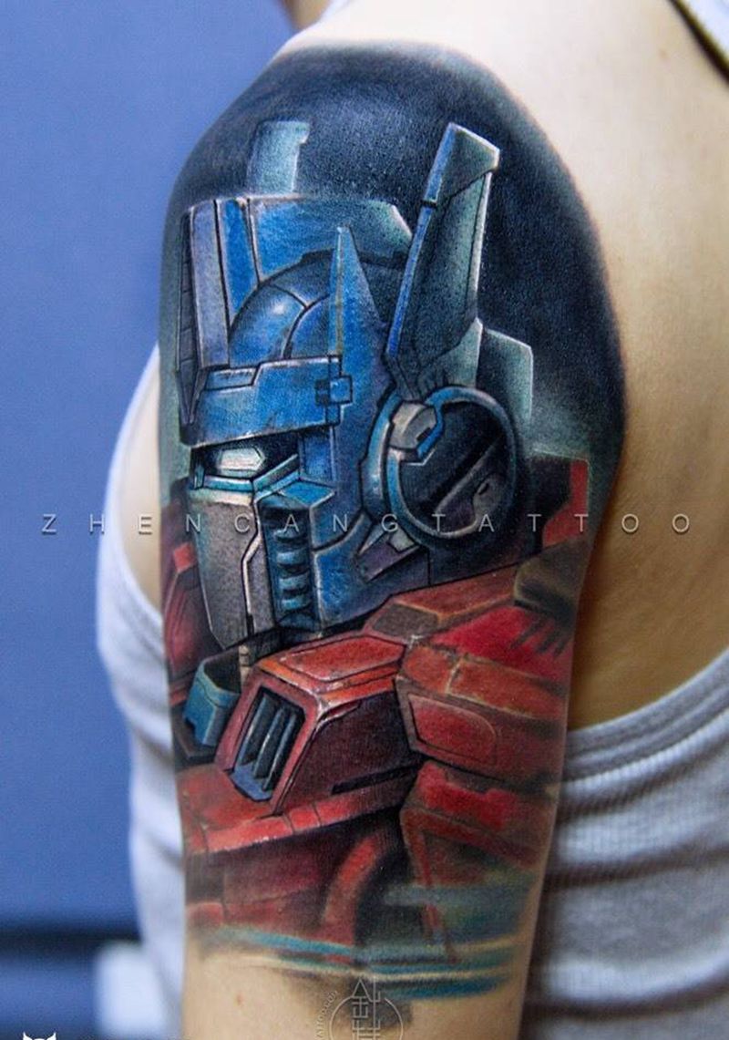 擎天柱纹身图片_成品手臂欧美写实人物针藏刺青邵钢纹身图案