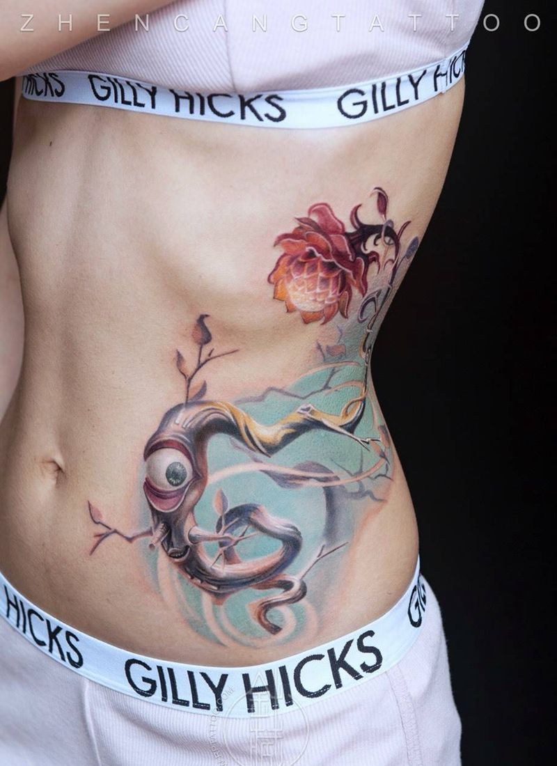光明之花 | 针藏刺青 ·邵钢· 作品纹身图片_成品腹部腰部清新原创邵钢针藏刺青纹身图案