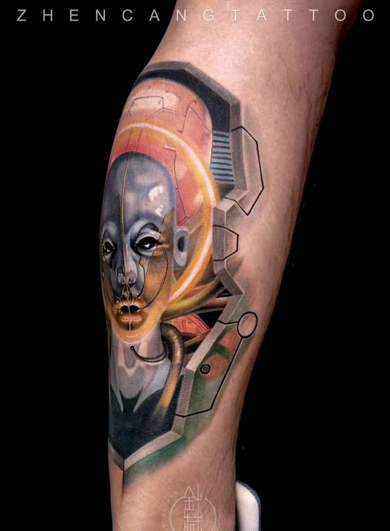星际宇宙 | 针藏刺青 ·邵钢纹身图片_腿部欧美写实针藏刺青邵钢纹身图案