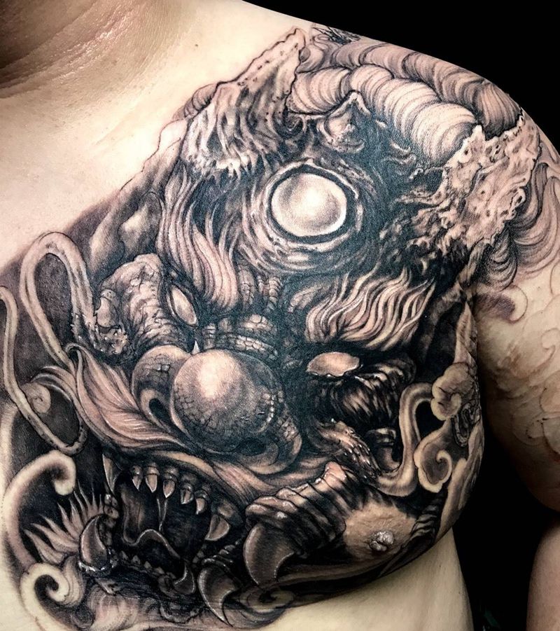 当前位置: 首页 >上海市纹身店-明月刺青纹身图案>披甲龙纹身图片_胸部手臂新传统过肩龙龙中国风纹身图案