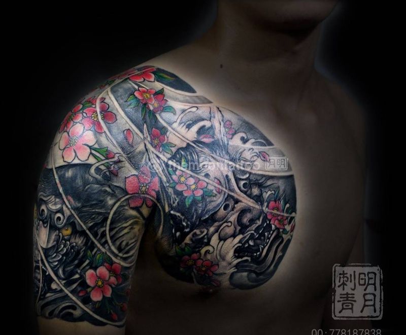• 纹身吧推荐的披肩图腾半胛纹身图案作品展示