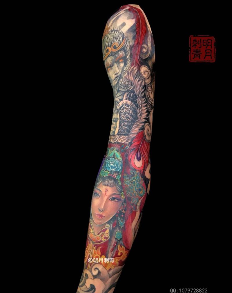 当前位置: 首页 >上海市纹身店-明月刺青纹身图案>大圣娶亲纹身图片_成品手臂传统鬼神齐天大圣孙悟空明月中国美人图神话爱情纹身图案