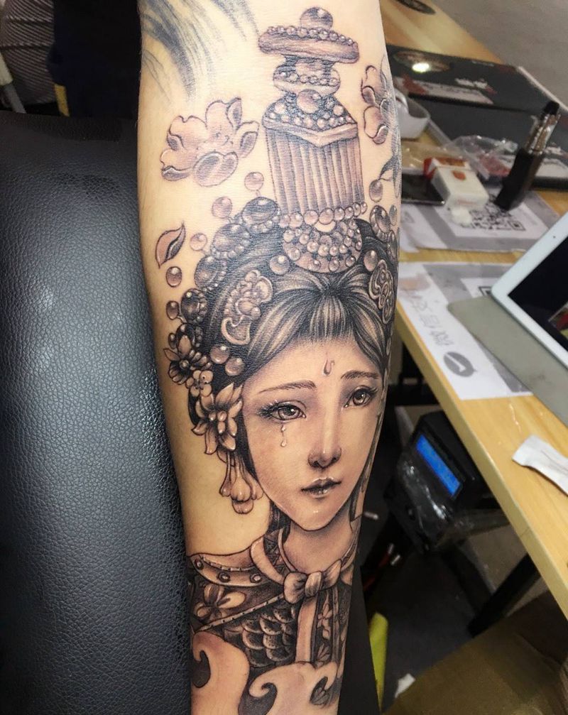 虞兮虞兮奈如何纹身图片_人物明月艺伎艺伎明月中国成品手部传统肖像纹身图案