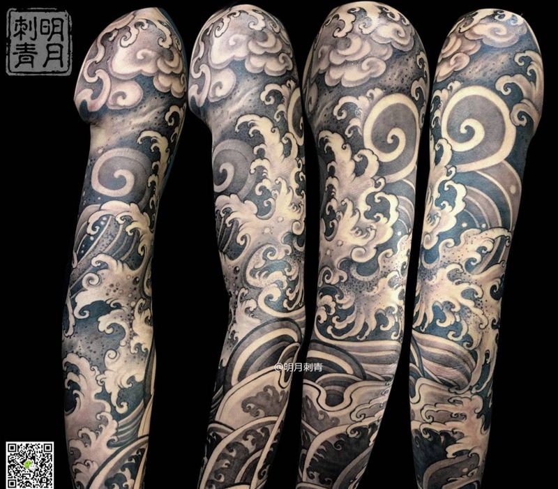 浪臂。超级浪纹身图片_成品手臂国画宗教原创植物字符图腾明月中国传统纹身图案