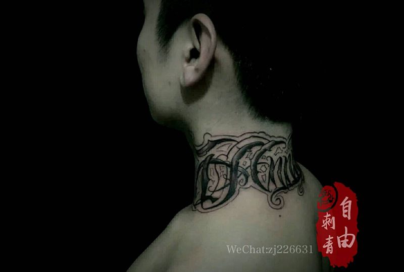 奇卡诺纹身图片_颈部花体字纹身图案