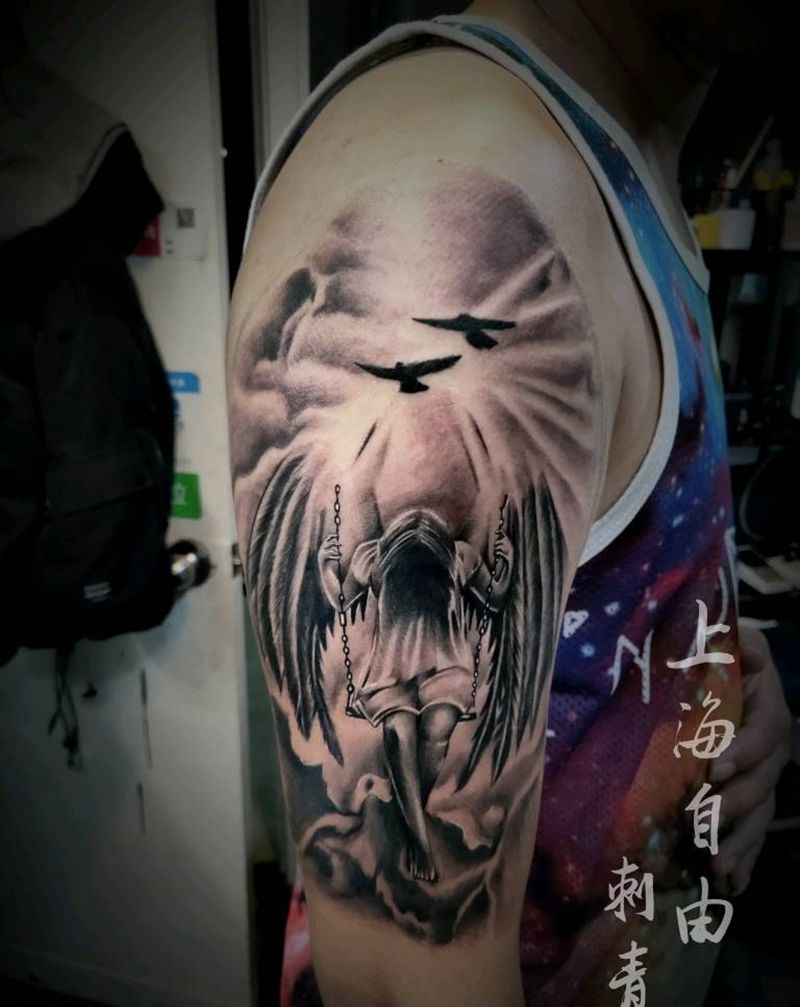 当前位置: 首页 >上海市纹身店-自由刺青纹身图案>天使纹身图片_手臂欧美写实天使魔鬼纹身图案